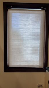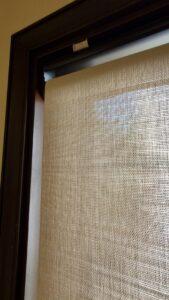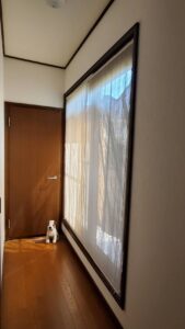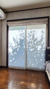 こちらの窓には、レース生地のシェードをお使いでしたが、光が入ってきて暑いとの事でロールスクリーンを取り付けました。