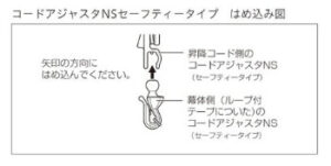 ・コードアジャスタNSの上部部品は昇降コードに取り付けたままにしておいてください。