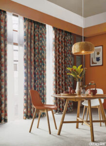 はっきりしたラインや紋様で描かれた幾何学柄のカーテンは、お部屋の主役になる存在感です。