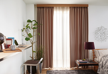 このカーテンレールにTOSOのウッドバランス+カバーセットを取り付けることによって、上部を美しく装飾し洗練された印象をあたえる事ができます。