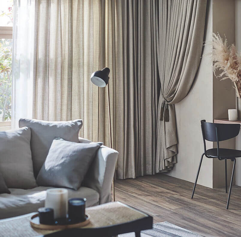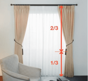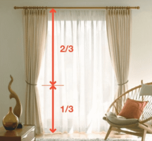 ふさかけの“左右”の位置は、タッセルの種類は関係なくカーテンのサイドがまっすぐ垂直になるように
