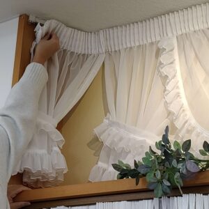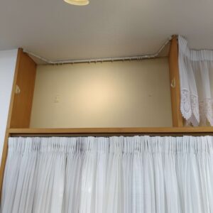 ①レースカーテンをカーテンレールから取り外します
