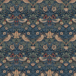 モリスの最も有名な代表作。別荘「ケルムスコット・マナー」の庭で、大切に育てたイチゴをついばむツグミたちを見て生まれたデザインです。泥棒なのに「いちご泥棒」と温かい名前をつけたところに、モリスの人柄が表れています。