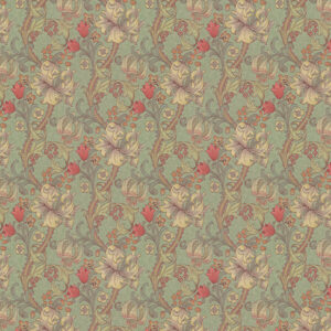 モリスの活動初期(1864年)のデザイン。左下から右上に向かう斜めの構図で、隣接する葉が複雑に絡み合っています。今にも弾けそうな瑞々しいフルーツが可愛らしい、根強い人気の柄です。