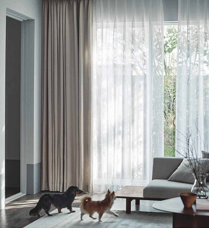 犬や猫などのペットは、かけがえのない家族の存在ですよね。でも、カーテンまわりのお悩みは意外と尽きないもの。「気づいたら爪でひっかいて破れていた…」「おしっこをかけられてしまった…」「毛やホコリですぐ汚れてしまう…」そんな経験をされた方も多いのではないでしょうか。