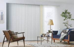 バーチカルブラインドは掃出し窓のような大きい窓に最適です。カーテンにのぼってしまう場合は、ロールスクリーンよりバーチカルブラインドの方が良いかもしれません。